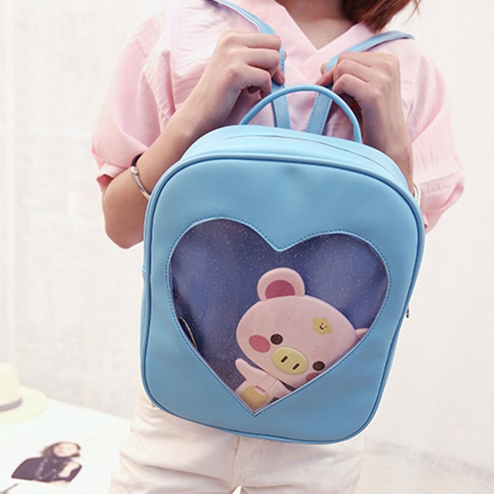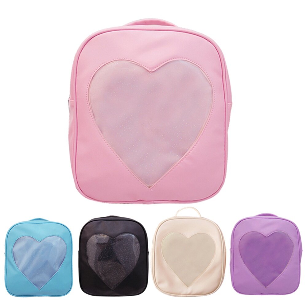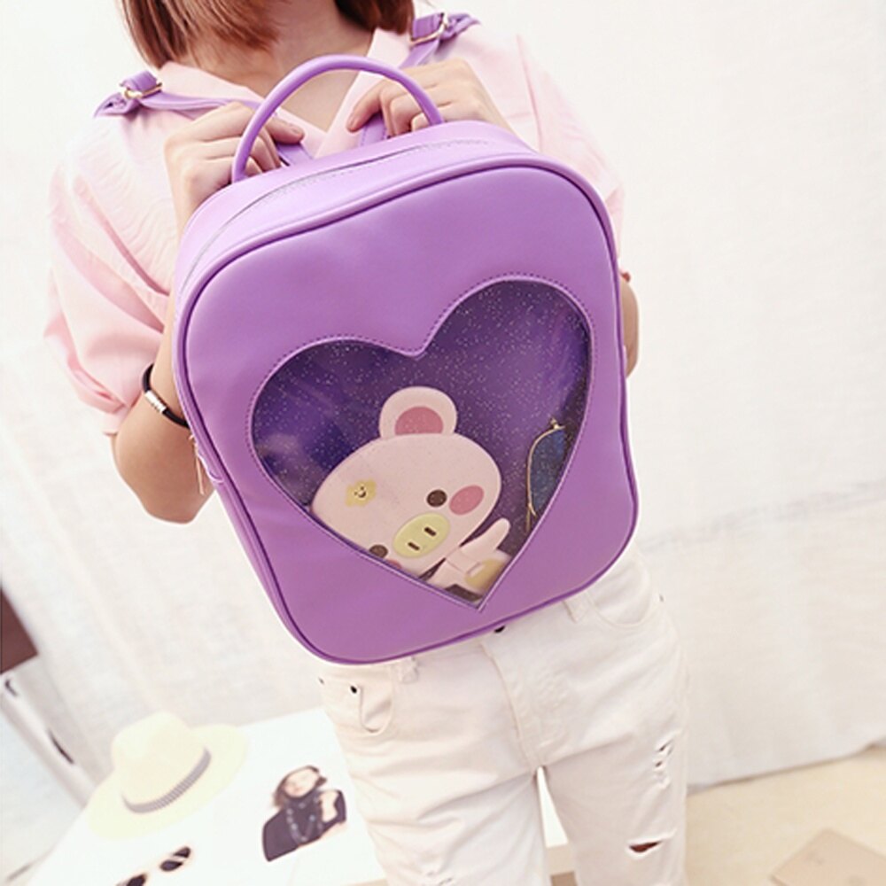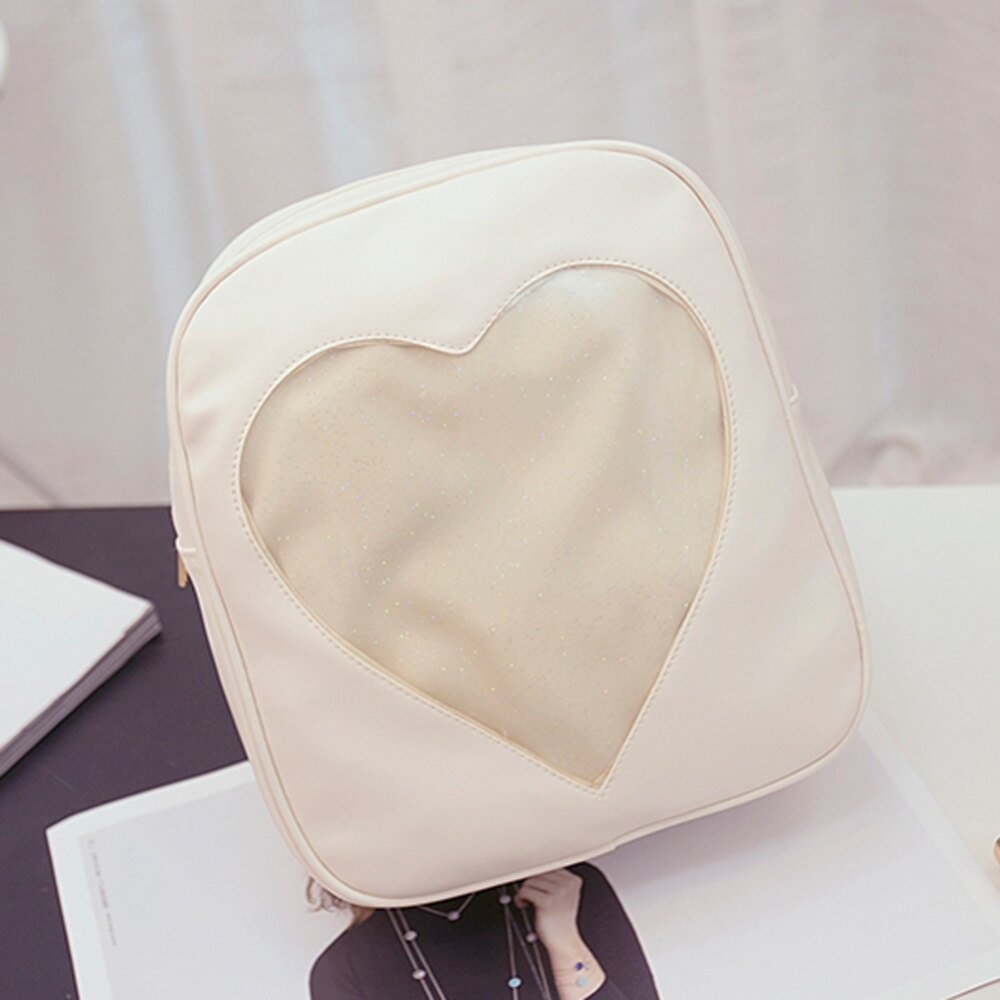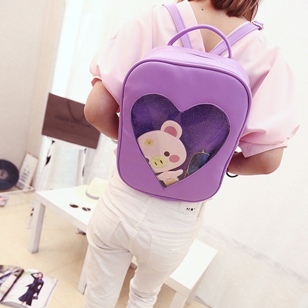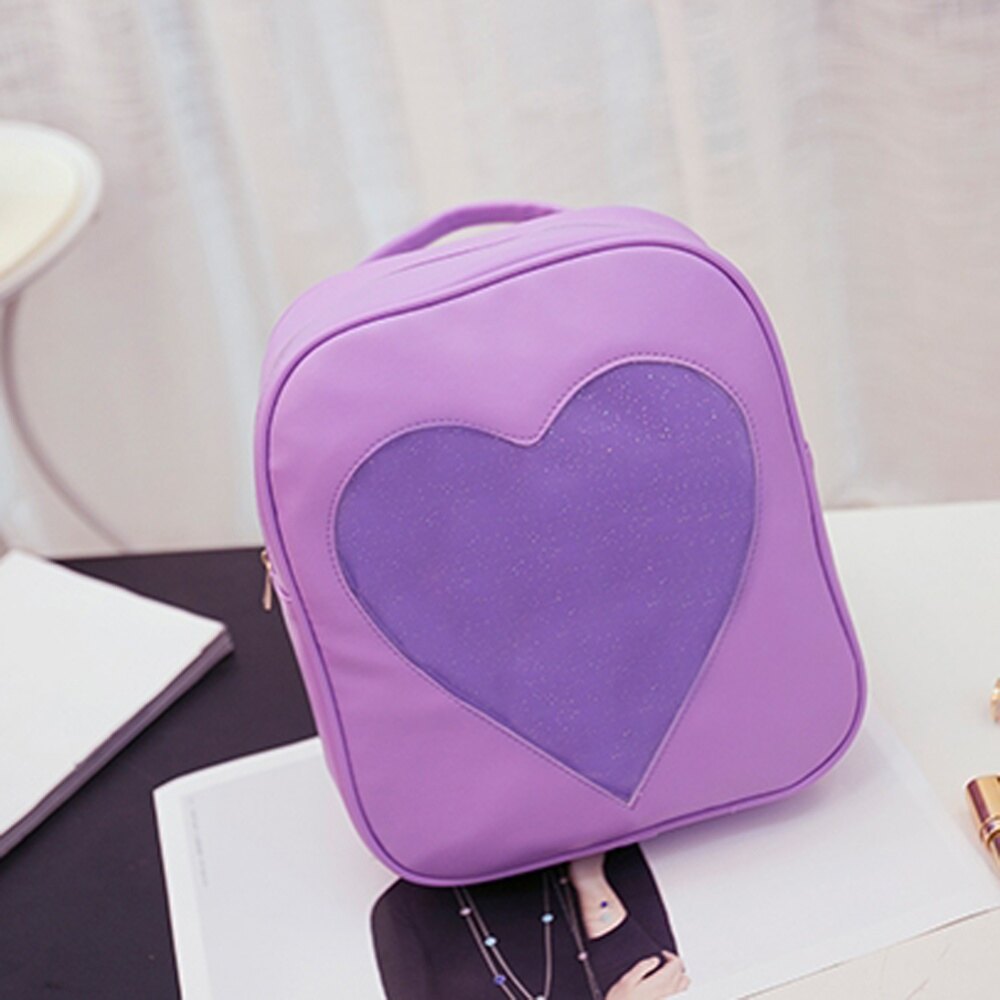 2017 New Women PU PVC Transparent Love Heart Shape Backpacks Girls School Bag Shoulder Bag
