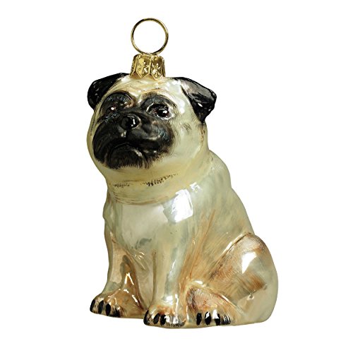 Joy to the World Collectibles European Blown Glass Pet Ornament, Pug Fawn