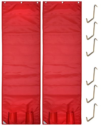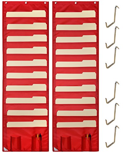 Wall Storage Pocket Charts (2 PACK) File Organizers with 6 Door Hangers- Best Pocket Chart for School, Classroom, Home or Office Use. Wall Pocket Chart Organizer (Red)