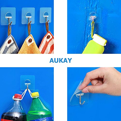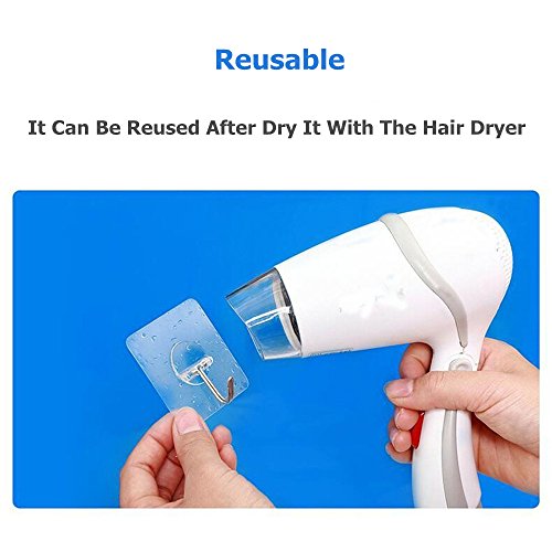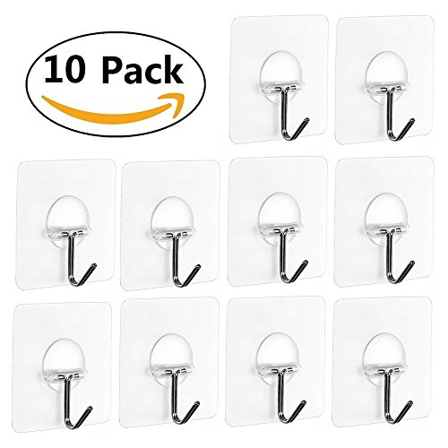 Powerful Adhesive Hooks Nail Free Transparent Reusable Heavy Duty Wall Hooks for Towel Loofah Bathrobe Clothes,Waterproof and Oilproof,Bathroom Kitchen Wall hook & Ceiling Hanger(10pcs)