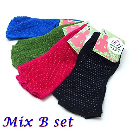 원본상품명: ヨガライフをもっと?しく 滑り止め 付き カラフル ヨガ ソックス ゆび無し 五本指 靴下 / ピラティス スポ?ツ にも (ブル?3足セット)