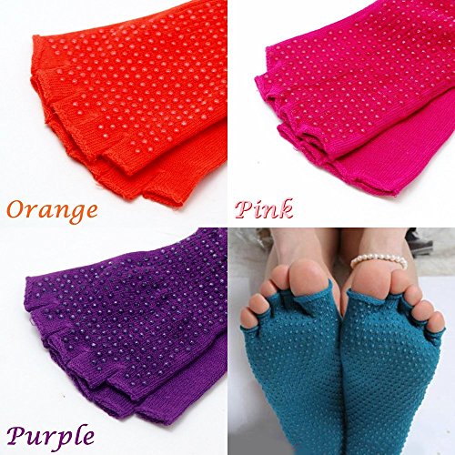 요가 라이프를 더 즐겁게 미끄럼방지 부착 컬러풀 요가 삭스 손가락 없음 5개 손가락 양말 / 필라테스 스포츠 로도 (블루3 족세트)