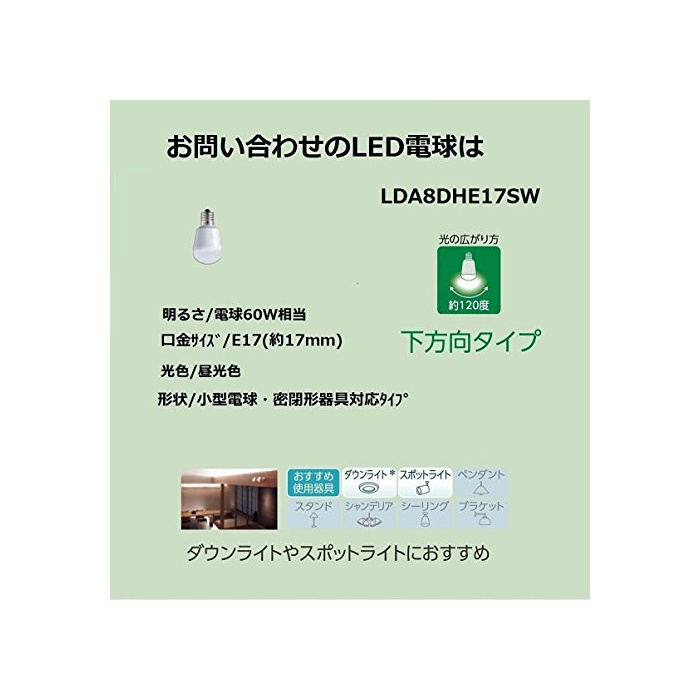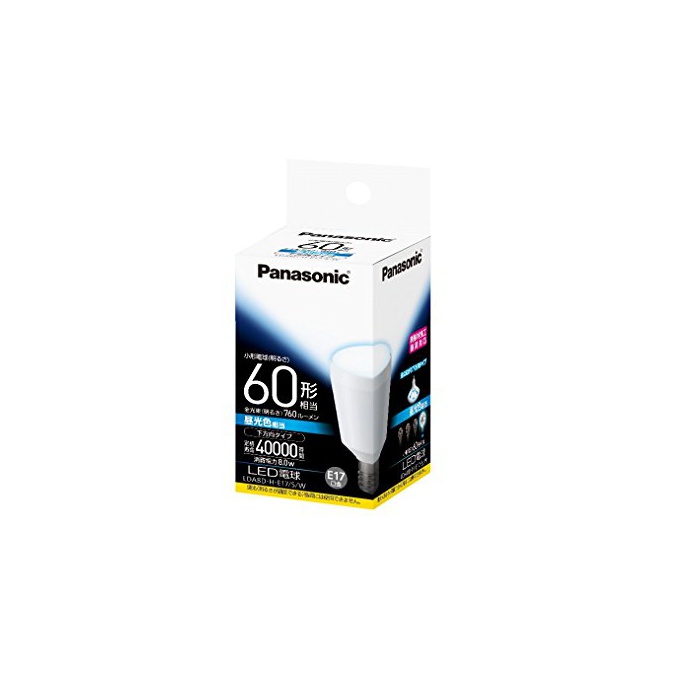 원본상품명: パナソニック LED電球 口金直17mm 電球60W形相 光色相(8.0W) 小型電球下方向タイプ 密閉形器具 LDA8DHE17SW