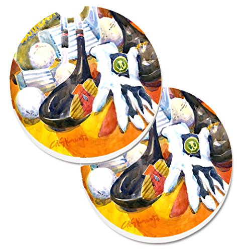 Caroline's Treasures Golf Clubs, Ball & Glove Set of 2 Cup Holder Car Coasters 6070CARC, 2.56, Multicolor