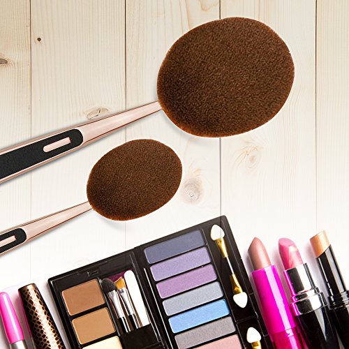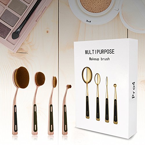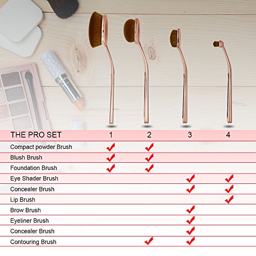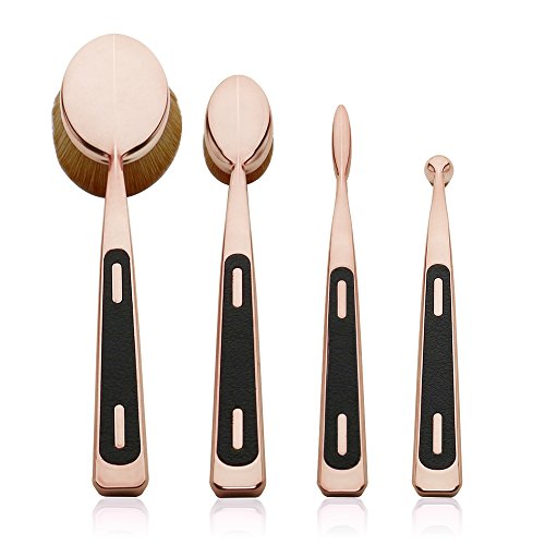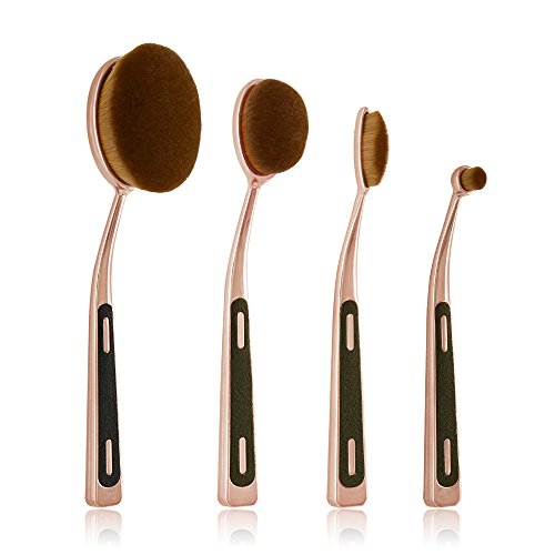 Leepiya 4 Pieces Oval Makeup Brush Set Rose Gold Pink Professional Ergonomic Pu Handle Foundation Blending Blush Concealer Eye Face Liquid Powder...