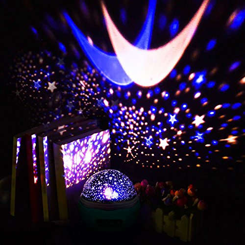 Studio : Number-One Publisher : Number-One Binding : Kitchen Product Description More Features: ★Multiple color options with bright white light can be used as mood light or night light. ★12 soft light songs for create a quite and smooth sleeping environment. ★Rotates at 360-degree, provides a fantastic moving sky on your ceiling or walls. ★8 Light Projection Modes to choose as your want. ★Romantic and festive atmosphere builder, help to soothe and relax kids. ★Ideal for decorating baby room, children's room, wedding, birthday, festivals, parties etc. Specification: -Material: ABS -Input Voltage: DC 5V 1A -Size: 5.2 x 5inch(L*H) -Weight: 260g -Light Source: 4 LED Bulbs (blue light, Green light, Red light, White light) How to use: -Plug in USB cable and move the lamp shade away before using projector functions -Button A: The warm night light ;press it again to turn off. -Button B: Switch for the light color (single light or colorful light cover); press 8 times to turn the color on/off. -Button C: It is to the rotary switch (rotate or do not rotate freely selectable) control ;press it again to turn it on/off. -Music Button: Turn on/off music or switch songs. Package Contents: *1 x Projector Light *1 x USB Cable *1 x User manual Seller Warranty Policy: 45-Day Money Back Guarantee, 12-Month Replacement Warranty, 7/24 Online Customer Service, Lifetime Support Guarantee 0
