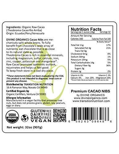 ✔ USDA Certified Organic Cacao / Cocoa: Vegan, non-GMO, kosher, gluten-free, dairy-free, soya-free, raw. Highest quality cacao / cocoa beans grown in Ecuador. Yummy dark chocolate taste with a crunch!