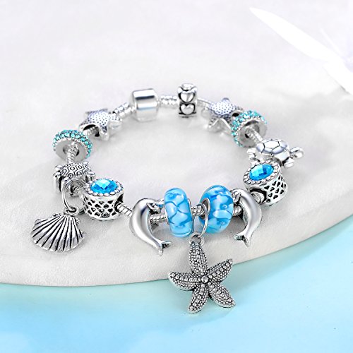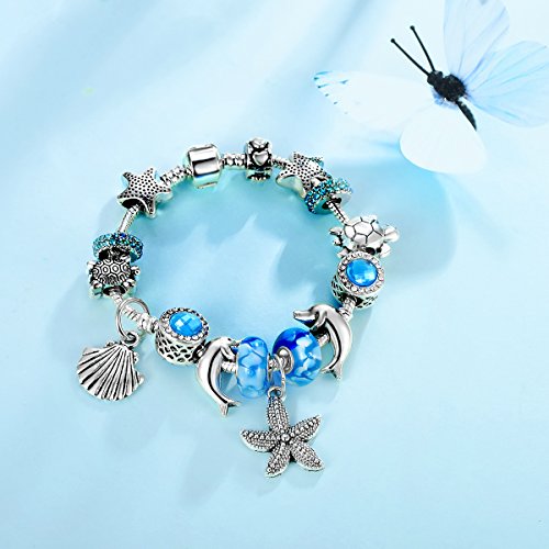 -. Feature : Exclusive design,European Ocean Beach Charm Beaded Bracelet 7.1 and 7.9 Inch for Women and Teen Girls Seashell Turtle Starfish Dolphin Charms / Changeable beads:The DIY charms bracelet is so beautiful, modern and so Chic!You Can Change the Bracelet by Yourself. / Great gift choice for special occasions such as a Birthday, Graduation, Anniversary, Wedding, Christmas, Easter, Valentine's Day and Mother's Day - Perfect for girlfriend, daughter, wife, mom, best friend, sister, etc. / This is an absolutely gorgeous bracelet.The detail on the charms is terrific and very precise. / Packed in a gift box.Good quality.Money Back Gurantee.