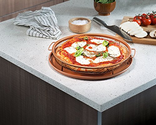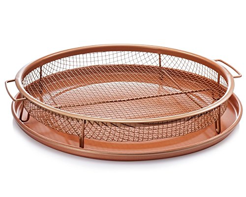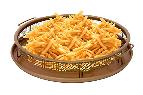 The amazing Gotham Steel crisping fryer that works in your oven Get the crunch & crisp you can't resist without added oils or fat. Unique elevated nonstick tray allows superheated air to pass through and circulate around all 360 degrees of your food for the perfect crisp & Brown all around. Now you can easily crisp anything like veggies, pizza, cakes and French fries with the Gotham Steel ti-cerama nonstick copper crisper tray. Perfect for all of your crisping tasks, this tray is constructed from steel and features a nonstick surface for added convenience.Feature