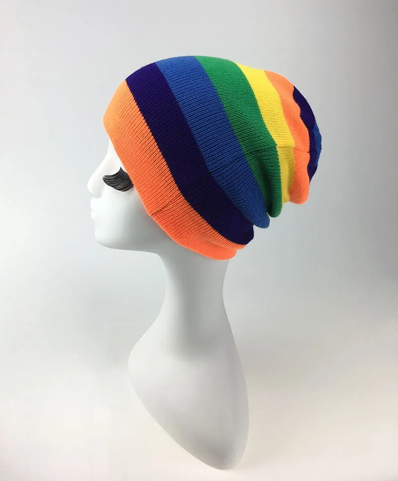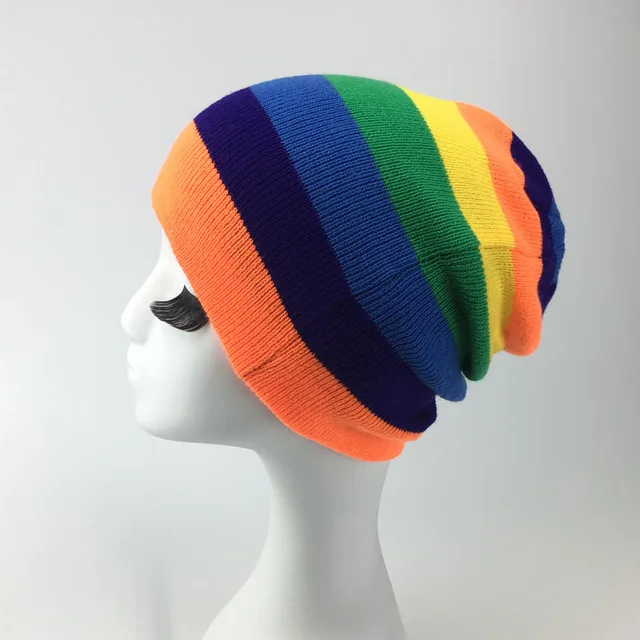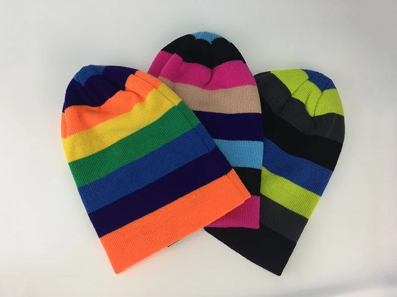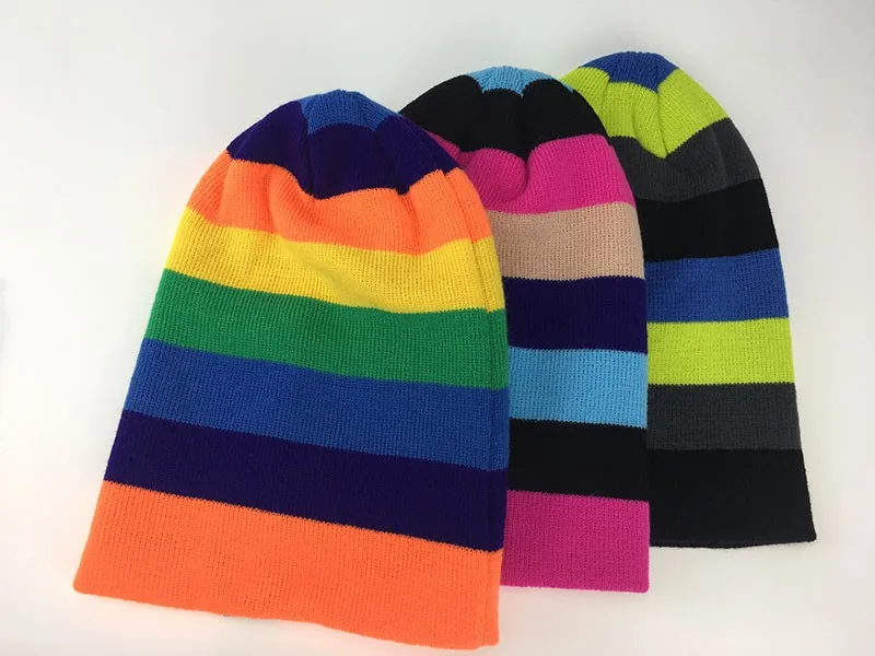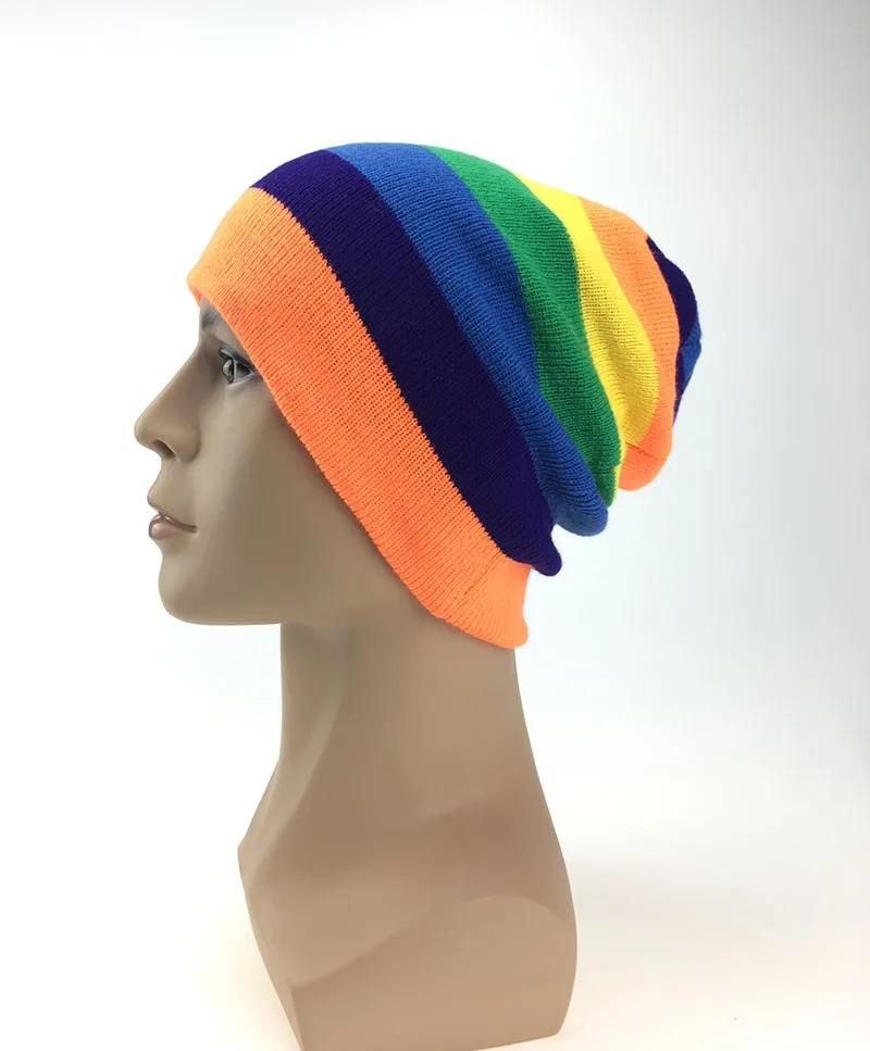 | [해외]새로운 패션 겨울 모자 남성 색상 공동 니트 양모 여성 모자 캐주얼 모자 여성 Skullies 비니 무지개 힙합 모자 |