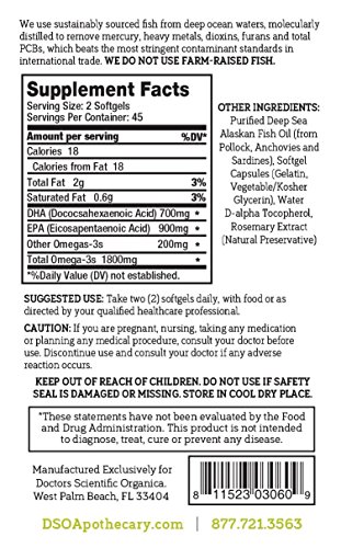 We use sustainably sourced fish from deep ocean waters, molecularly distilled to remover mercury, heavy metals, dioxins, furans and total PCBs, which beats the most stringent contaminant standards in international trade. We do not use farm-raised fish. Doctor Scientific Organica is a modern apothecary combining the good of the past with the science of the present. With doctor-designed products and innovative, low footprint packaging - we're changing the way customers buy supplements. All our products are Made in the USA in an FDA and GMP Facility and third-party safety tested for purity.Feature