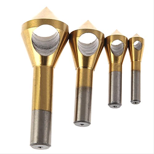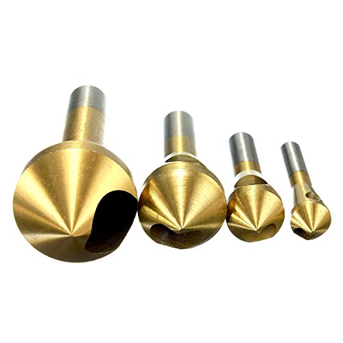 Hanperal 4x Hss Titanium Coated Countersink & Deburring Metal Wood Drill Bit set (Gold Color)