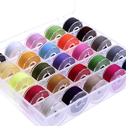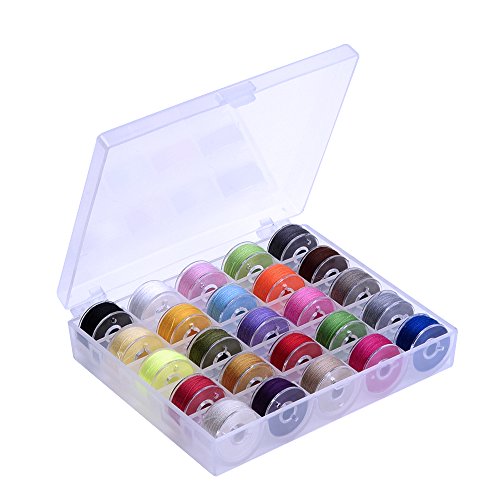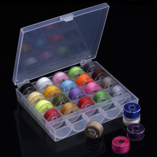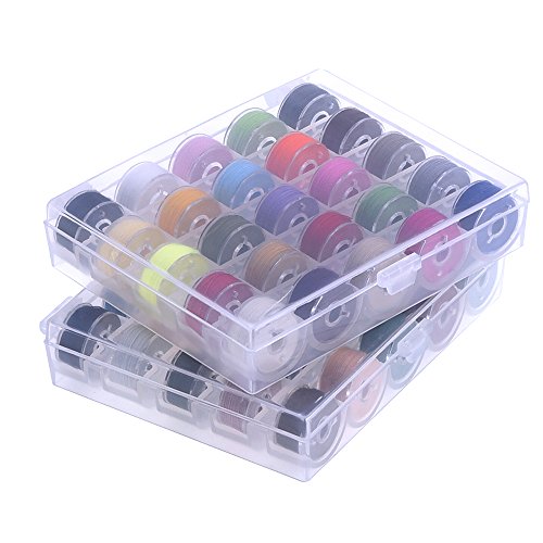 Outus Prewound Thread Bobbins with Bobbin Box for Brother/ Babylock/ Janome/ Elna/ Singer, Assorted Colors, 50 Pieces