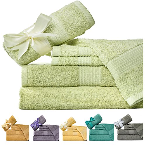 Weavely 600 GSM 6-Piece Cotton Bath Towel Set, Pale Green