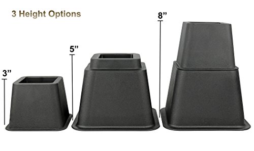 Greenco Adjustable Bed and Furniture Riser,Great For Under Bed Storage, 3 Height Option Risers, 8 Inch Bed Riser