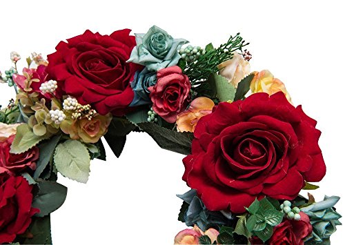 14inch Flower Wreath Handmade Artificial Floral Silk Wreath for Front Door Home Wall Wedding Decoration (14inch, C)