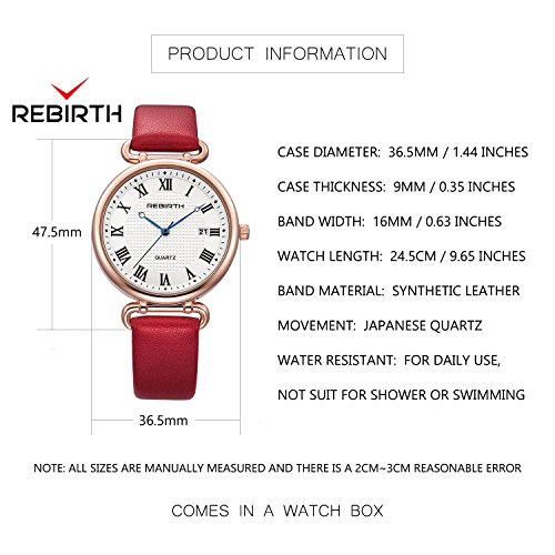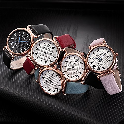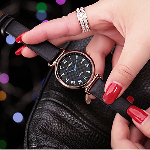Bosymart Women's Quartz Analog Leather Strap Watch with Date Feature
