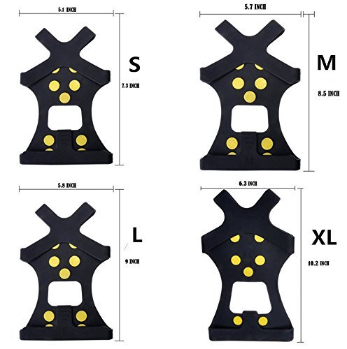 X-Large (US WOMEN:13-16/ US MEN:11-14). Package: 1 Pair How to use: 1. Carefully fasten the grabbers to your shoes, starting with the large sizes are required if wearing over winter footware. 2. We suggest that the grabbers are used only on snow or ice to prevent wear to the studs. 3. Always clean the grabbers with a dry cloth after using. Store the grabbers in a cool and dry place, out of direct sunlight Feature