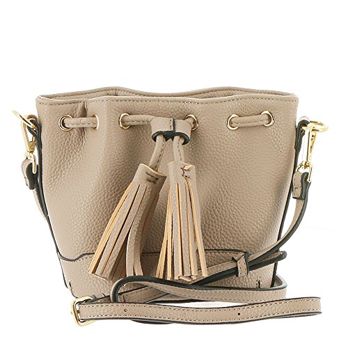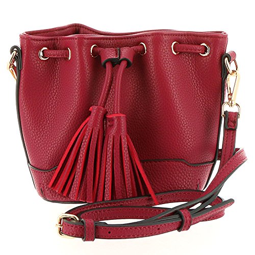 Product Description *Wherever the destination, this crossbody bag will take you there in style *Synthetic material with O-ring detail and large tassel drawstring *Carry handle and detachable, adjustable shoulder strap *Interior includes a zippered pocket *7"Lx4-1/2"Dx6-1/2"H 0