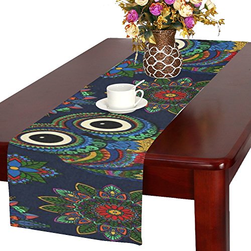 -. Title : InterestP.R.Int Boho Owl Cotton Table Runner Placemat 16 x 72 inch, Bohemian Flower Mandala Table Linen Cloth for Office Kitchen Dining Wedding Party Home Decor