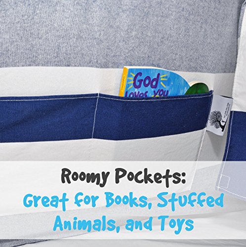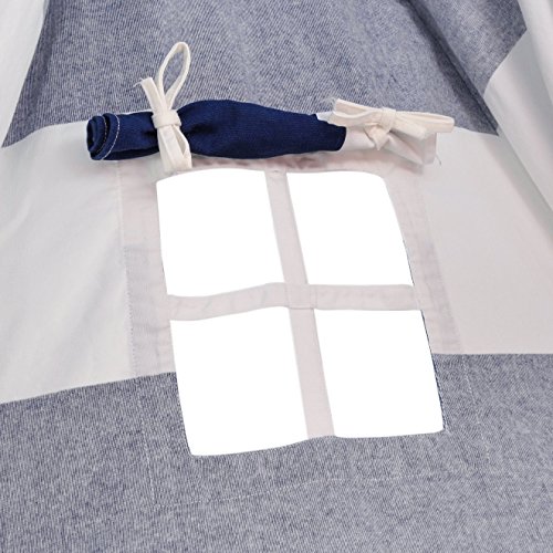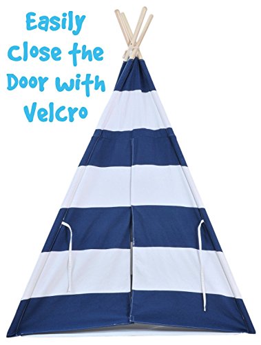 NAVY CANVAS KIDS TEEPEE TENT - PORTABLE COTTON TENT (NO EXTRA CHEMICALS) WITH CARRYING CASE, LARGE BLUE STRIPES, MAKES A GREAT INDOOR PLAYHOUSE