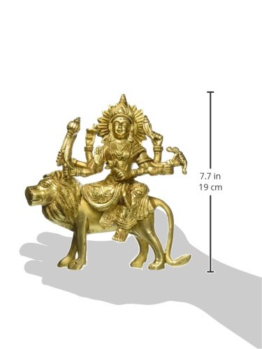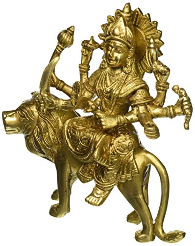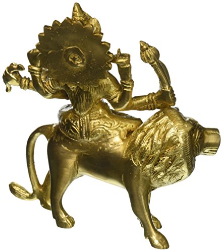 Gangesindia Ma Sherawali Seated on Lion Brass Statue