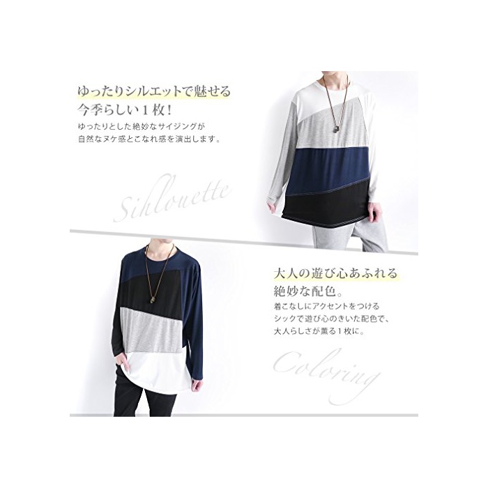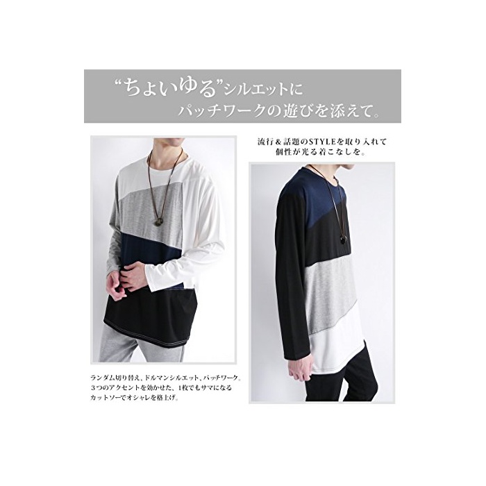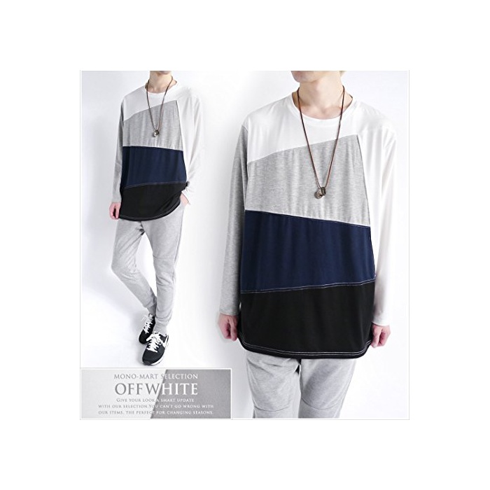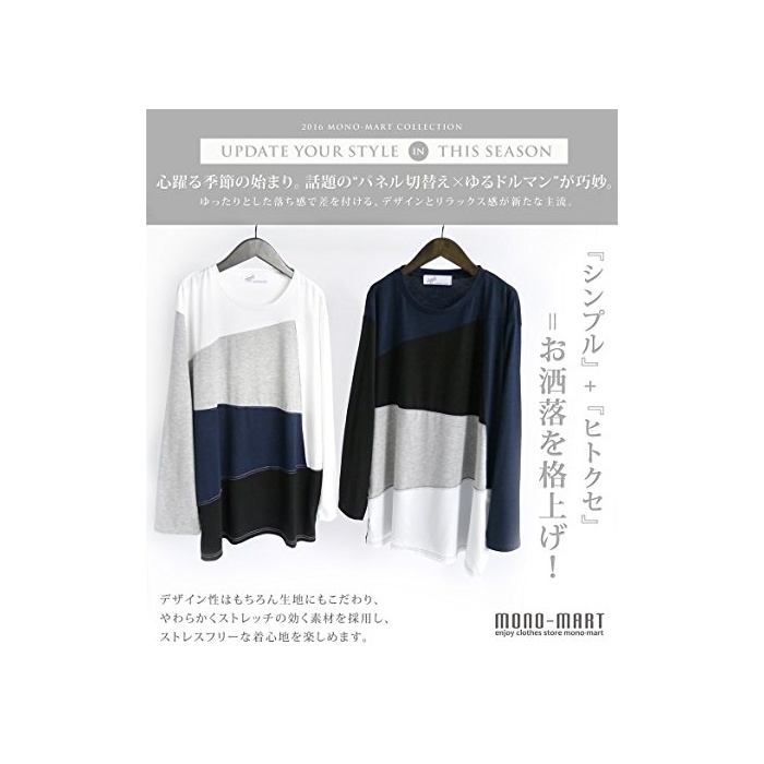 원본상품명: (モノマト) MONO-MART 長袖 斜め ランダム 切り返し バイカラ L/S ドルマン カットソ パネル ブロック MODE メンズ
