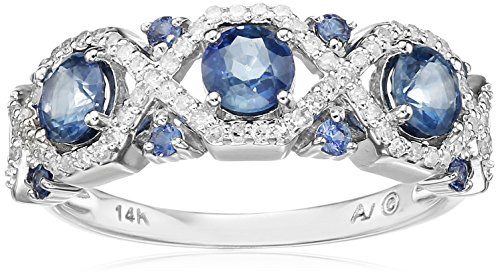 14k White Gold, Light Sapphire, and Diamond Ring (1/5 cttw, I-J Color, I2-I3 Clarity), Size 7