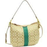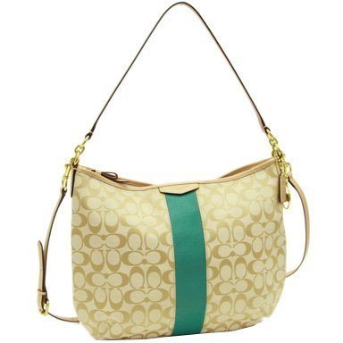 COACH SIGNATURE STRIPE CONVERTIBLE HOBO BAG LIGHT KHAKI / EMERALD GREEN - STYLE 29941