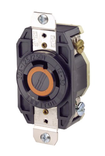 Leviton 2710 30 Amp, 125/250 Volt, Flush Mounting Locking Receptacle, Industrial Grade, Grounding, V-0-MAX, Black