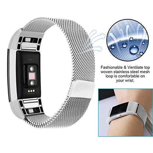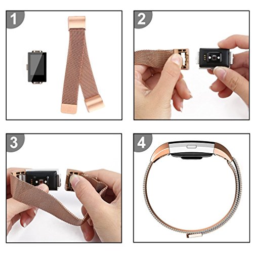 Studio : Erjia Publisher : Erjia Binding : Misc. Product Description bayite replacement milanese band for Fitbit Charge 2 elevates your style for every occasion Strong magnetic clasp closure, easily stick and lock your watch band. With a simple latching mechanism your Fitbit Charge 2 is securely held in place with the option to switch out the band quickly for another look. Easy to lock into your fitbit charge 2 watch and one button removal. You can swap easily back and forth with different color or other fitbit charge 2 watch band Top mesh loop with durable adapters, very comfortable to wear and easy to install. Strong magnetic clasp, convenient for you to adjust the size 0