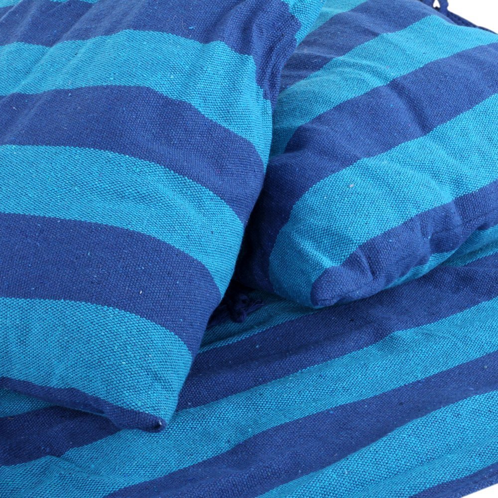 Purchased by elementary school children. A narrow rope, S shape hook was also attached. I bought a belt for hammock, Canavira, so I use it for assistance at the time of a moment. Extra cushion degree. I use a large feather cushion. I will stretch. I adjusted it about 3 times. It is pleasant. If it is set too high, it is difficult for children to get on, and if the legs do not stand, it will be difficult for them to shake alone. The texture of the fabric and the wooden stick are good feeling. Because the price is a price, I did not mind a bit of sloppiness. There was no problem even if an adult of 70 kilometers got on. Child relationship. It may be necessary to purchase two more.