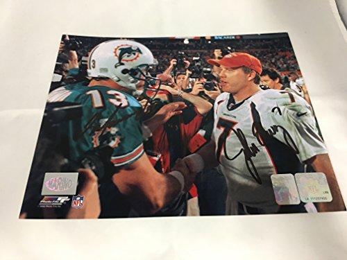 John Elway Dan Marino Dual Signed Autographed Broncos Dolphins 8x10 Photo Marino Hologram & Elway Hologram