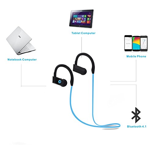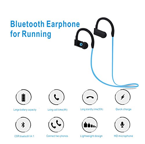 -. Title : CIPO Bluetooth Headphones, Wireless waterproof Earpieces Sports Earphones, HD Stereo Sweatproof Earbuds with Mic/Microphone for Gym Running Workout, Noise Cancelling Headsets -Blue