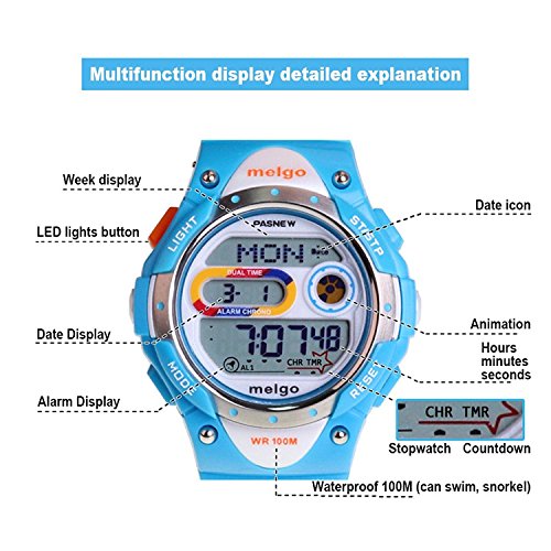 Jewtme LED Waterproof 100m Sports Digital Watch for Children Girls Boys (White)