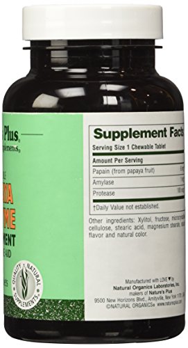 Papaya Enzyme Chewable Each Papaya Enzyme chewable tablet is derived from 100% all-natural papaya. Supplement Facts Ingredient Amount % Daily Value Papain (from papaya fruit and leaves) 6 mg