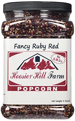 -. Binding : Misc. -. Brand : Hoosier Hill Farm -. EAN : 0850627005939 -. Feature : Huge 4 Pound Jar!! High in fiber and antioxidants / Premium popcorn grown specifically for tenderness and taste / Great for snack time and movie night / This is fresh from the farm gourmet popping corn. / Hoosier Hill Farm Brand. Economical 4 pound tub. -. Label : Hoosier Hill Farm -. Manufacturer : Hoosier Hill Farm -. ProductGroup : Grocery -. ProductTypeName : GROCERY -. Publisher : Hoosier Hill Farm -. Studio : Hoosier Hill Farm -. Title : Hoosier Hill Farm Ruby Red, Popcorn Lovers 4 lb. Jar. -. UPC : 850627005939