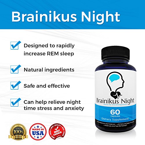 Brainikus Night is all natural sleep aid supplements are formulated to help you get the highest quality sleep by supporting a calm and restful night. Our formula also helps with night time anxiety relief so you won't wake up feeling anxious, stressed or nervous. This natural supplement won't leave you feeling groggy and in a fog the next morning either. You will wake up with energy, alert vibrancy, and quickly experience the feeling of relaxation naturally. Brainikus Night Sleep Nootropics Booster sleep pills are suitable for both men and women that suffer from insufficient rest without making them feel sluggish the next day. Unlike some addictive prescription drugs, our sleep aid pills are the safe and effective way to fight anxiety and insomnia at night for a better sleep. This all-natural sleep supplement will not only improve your nights but more sleep will enhance your days. Our product has been formulated to provide real nighttime anti-anxiety results and improve sleep for ordinary people who live busy lifestyles. It contains 13 powerful ingredients that work synergistically together to produce an effective product. Ashwagandha, St. John's Wort, Valerian, Skullcap, 5-HTP, Chamomile, B-Vitamins, Goji, and more natural ingredients are blending together to promote quality sleep through the entire night. Brainikus Night has been manufactured in a facility that is FDA registered and follows GMP standards. The sleep aid pills are tested in a 3rd party testing facility to ensure the quality and effectiveness of our sleep nootropic brain booster supplement. Results will be best noticed after taking the sleep aid supplements consistently for 2-3 days. We want you to receive the night's sleep you have been missing out. Brainikus Night will provide the sleep you want while helping you feel calm and relaxed. If you are not totally satisfied we will refund your money.Feature