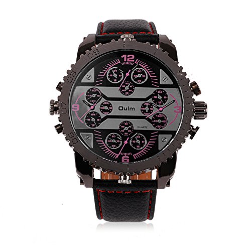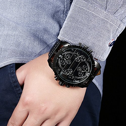 Rockyu 브랜드 인기 손목시계 워치 맨즈 레이디스 세계 포멀 사파이어 유리 블랙 레더 가죽 밴드 [병행수입품]