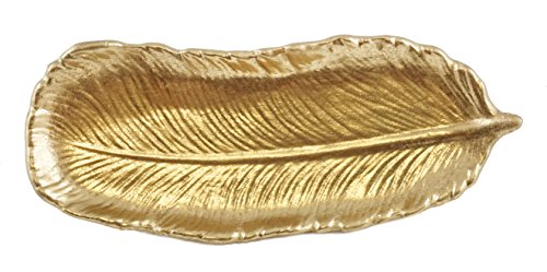 -. Binding : Kitchen -. Brand : Caffco -. Color : Multicolor -. EAN : 0885640204649 -. Feature : One Trinket Tray / Measures 9.15"L x 3.75"W / Made of resin / Features a metallic gold-colored trinket tray that is shaped like a feather / This tray is sure to look stunning on any counter or tabletop! -. IsAutographed : 0 -. Label : Caffco -. Manufacturer : Caffco -. PackageQuantity : 4 -. ProductGroup : Home -. ProductTypeName : HOME -. Publisher : Caffco -. Studio : Caffco -. Title : Metallic Feather Decorative Trinket Tray -. UPC : 885640204649