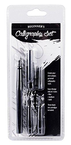 -. Feature : Beginner's Calligraphy Set / Easy Change nibs in 3 sizes: fine, medium and bold / Includes 3 black ink cartridges