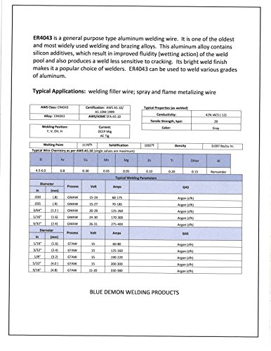 Blue Demon ER4043 X 1/16" X 36" X 1# Tube general purpose aluminum TIG welding rod