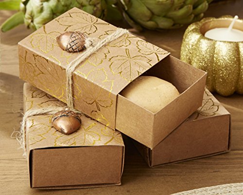 Kate Aspen Foil Leaf Print Kraft Favor Box with Acorn Charm (Set of 24), Gold/Copper