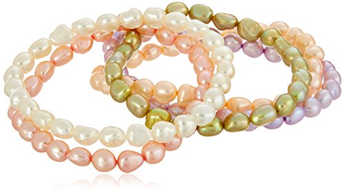 -. Title : Set of Five 6-7mm Baroque Freshwater Cultured Pearl Stretch Bracelets, 3"