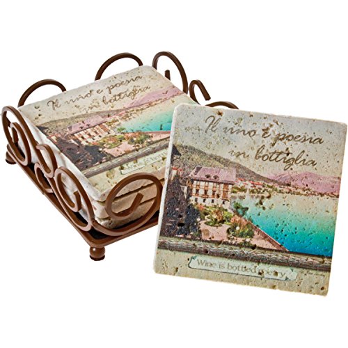 Thirstystone 4-Piece Coaster Set with Holder Included Italian Inspirations Bottled Poetry