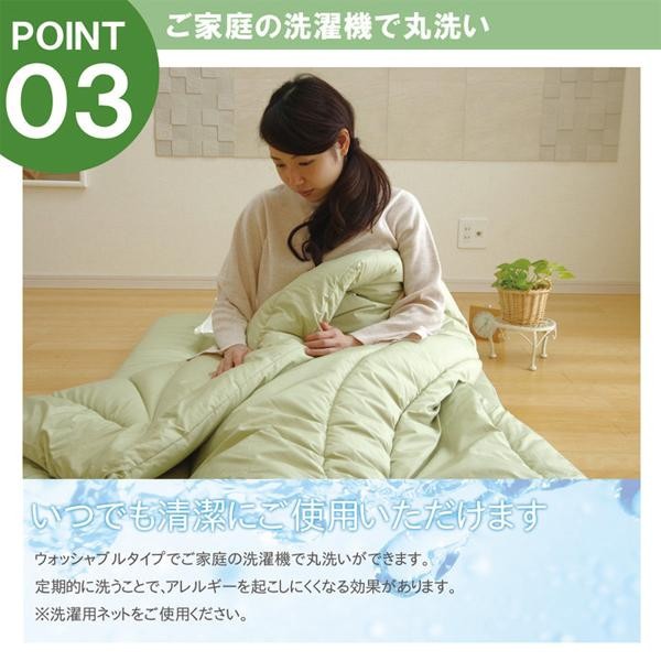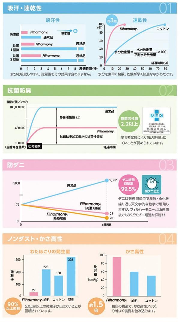 | 生地表面にヒバエッセンスを使用、中わたに東洋紡の特殊なわた、フィルハーモニィを使用した掛け布団です。 |