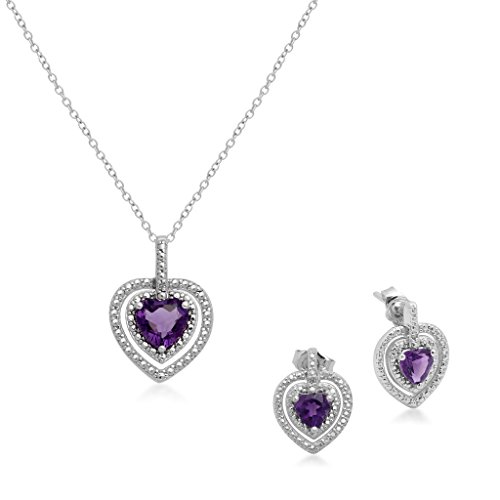 -. Binding : Jewelry -. Brand : Jewelili -. Department : womens -. Feature : Sterling silver pendant necklace and earrings set studded with heart amethyst and diamond accent. The earrings are secured with butterfly ear nut and post. Includes 18" rolo chain with lobster claw. / All of our diamonds and gemstones are conflict free / Amethyst is the traditional birthstone for those born in February / Item is shipped in a beautiful JEWELILI gift box / Return on any order within 30 days -. Label : Jewelili -. Manufacturer : Jewelili -. Model : BS39630 -. MPN : BS39630 -. PartNumber : BS39630 -. ProductGroup : Jewelry -. ProductTypeName : FINEOTHER -. Publisher : Jewelili -. Studio : Jewelili -. Title : Jewelili Sterling Silver Heart Amethyst with Diamond Accent Pendant Necklace And Earrings Jewelry Set