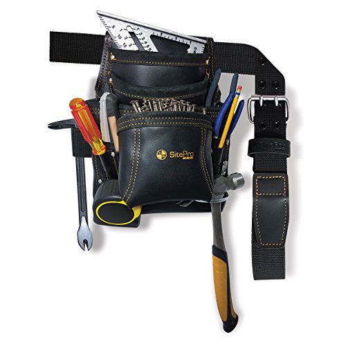 SitePro 10113-TSB 10-Pocket Carpenter's Top Grain Leather Nail and Tool Bag with Belt