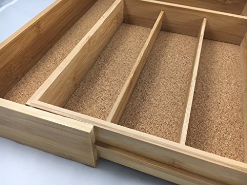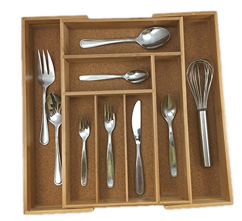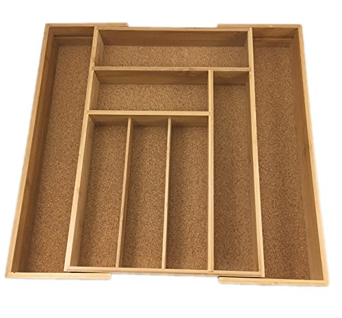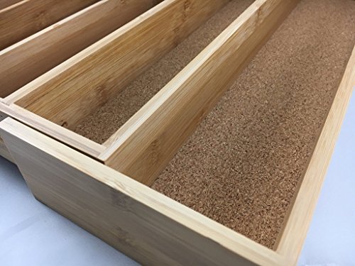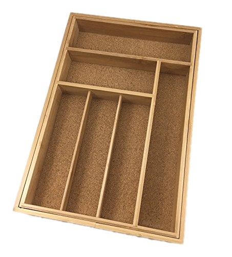 Expandable Bamboo Drawer Organizer Cork Lined Kitchen Cutlery Tray