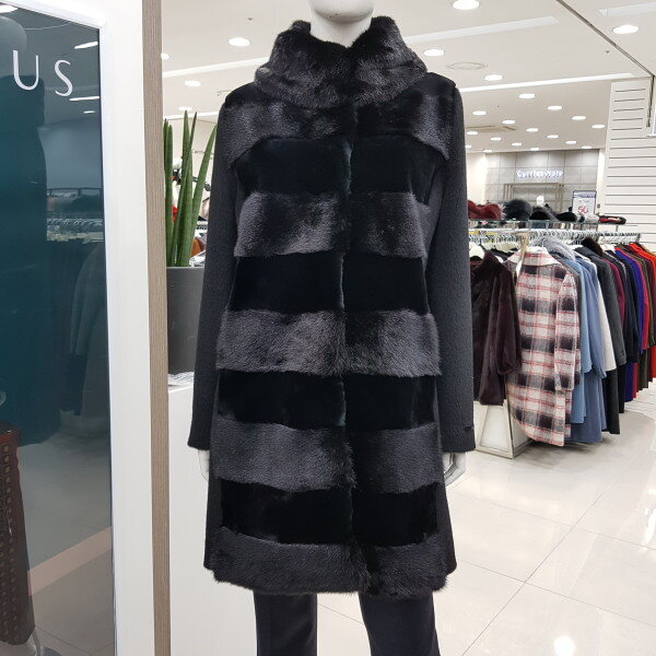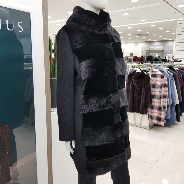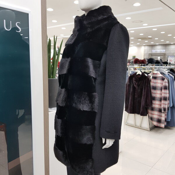 앞판에 밍크와 렉스 토끼털이 배색처리되어 멋스럽고 고급스러우면서수리알파카68%와 모가 함유 되어 있어 따뜻한 코트입니다
